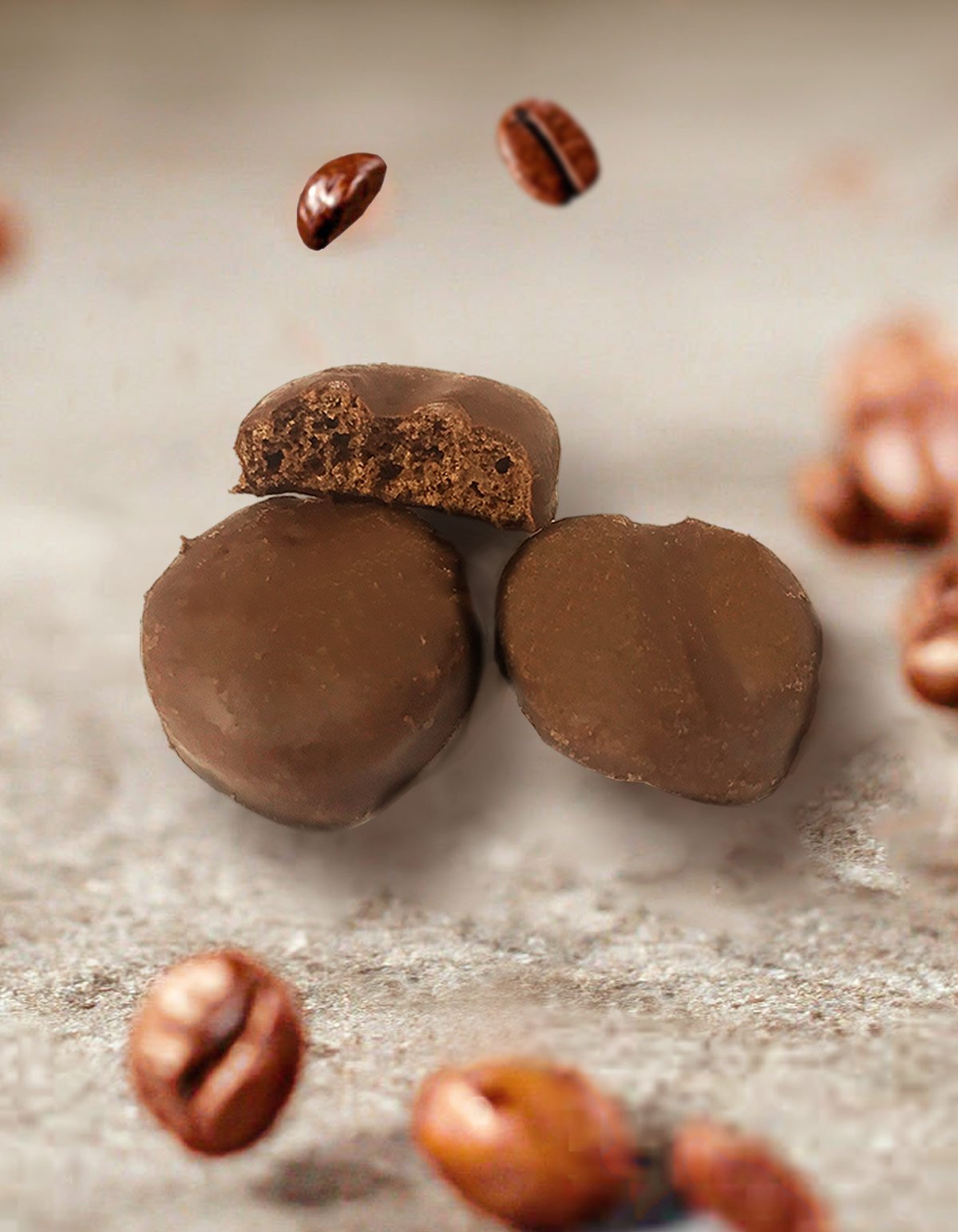 Grão Mineiro é uma deliciosa bolacha sabor café coberta com chocolate.
