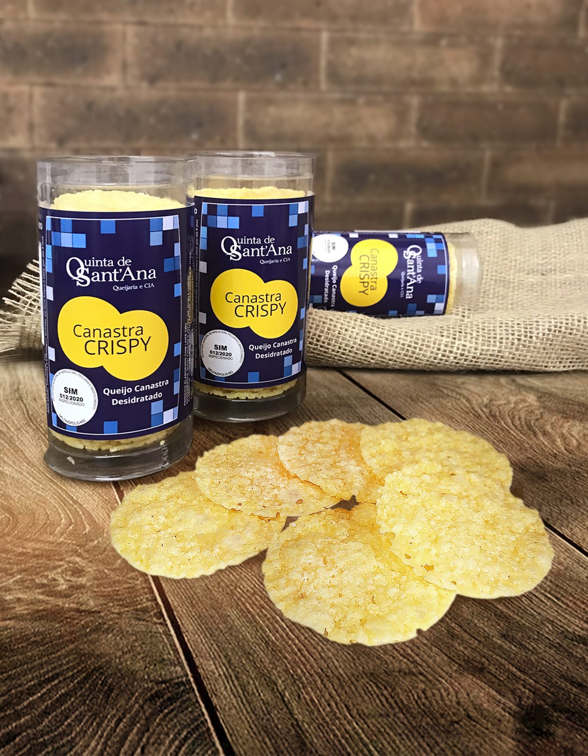 O Canastra Crispy Quinta de Sant’Ana é um salgadinho feito a partir da desidratação do Queijo Canastra meia cura.