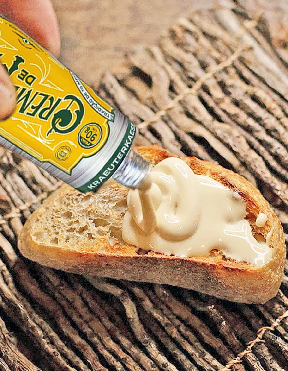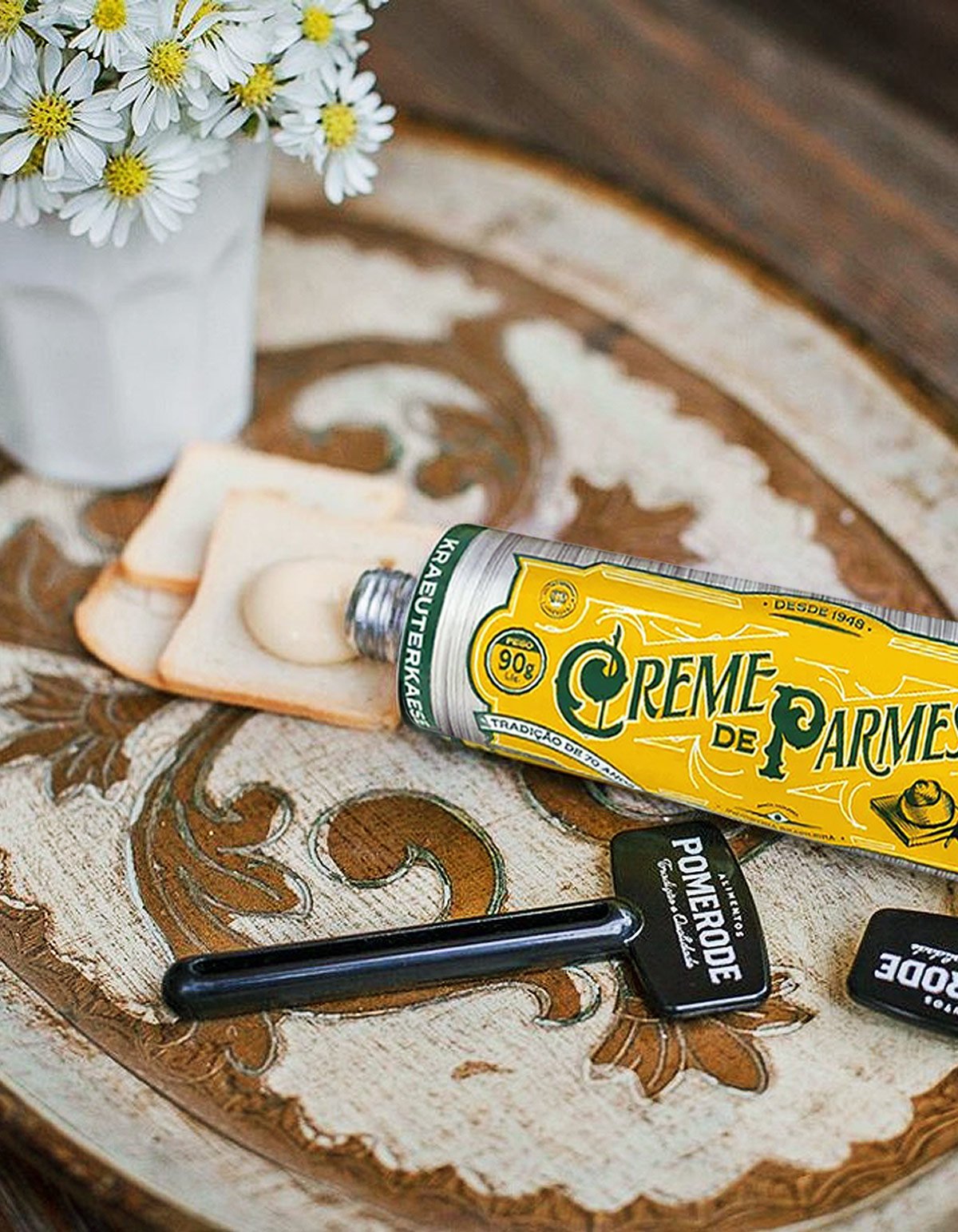 Isso se deve não apenas ao delicioso sabor, mas também à inusitada embalagem em bisnagas de alumínio de 90g. Feito pelo derretimento dos queijos parmesão e prato em alta temperatura e pela adição de uma rara erva fina importada da Áustria, o produto resulta em uma combinação de sabor, textura e aroma incomparáveis.