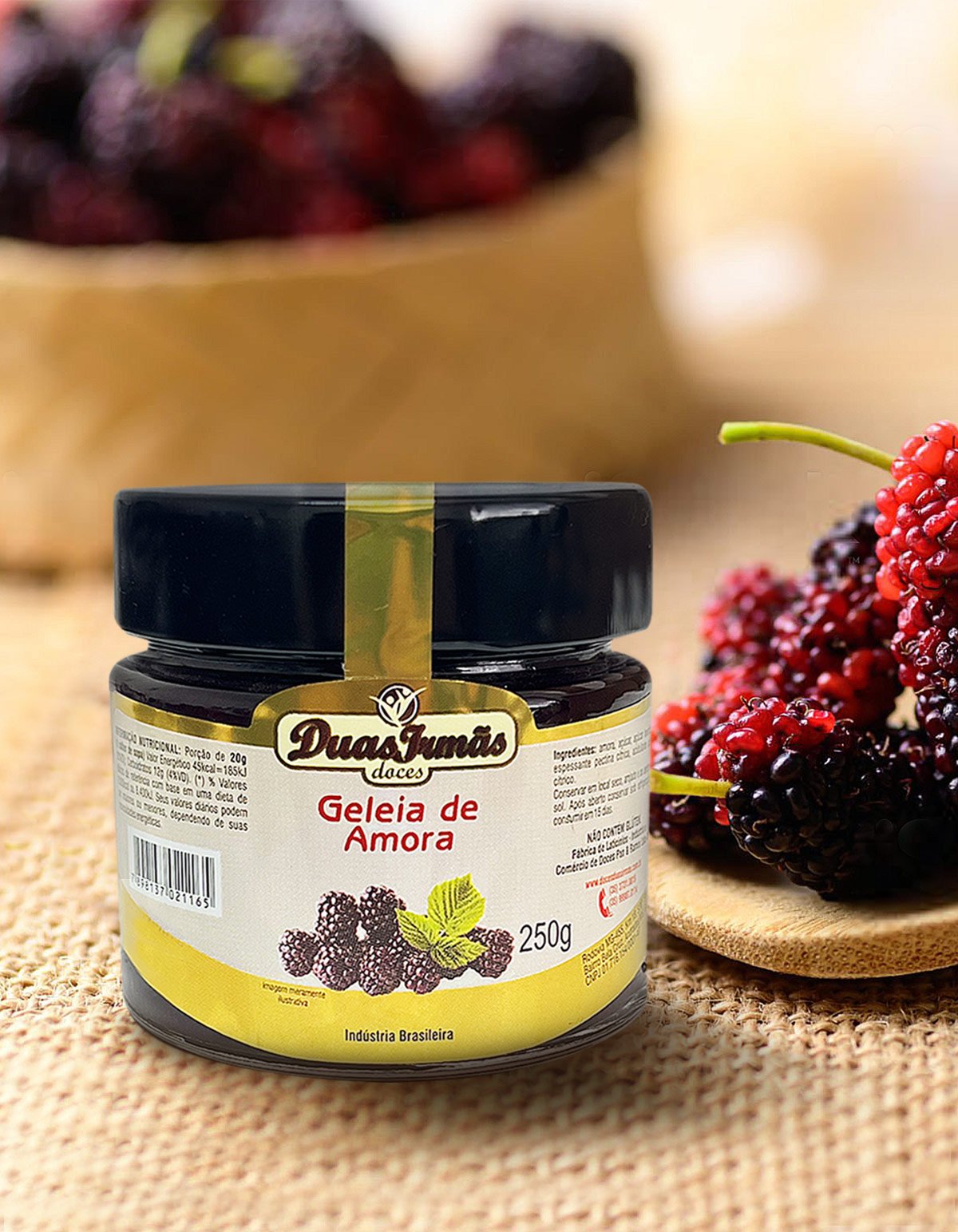 Preparada com amoras frescas e selecionadas, a geleia possui um sabor autêntico e irresistível, preservando o sabor e a textura natural das frutas.