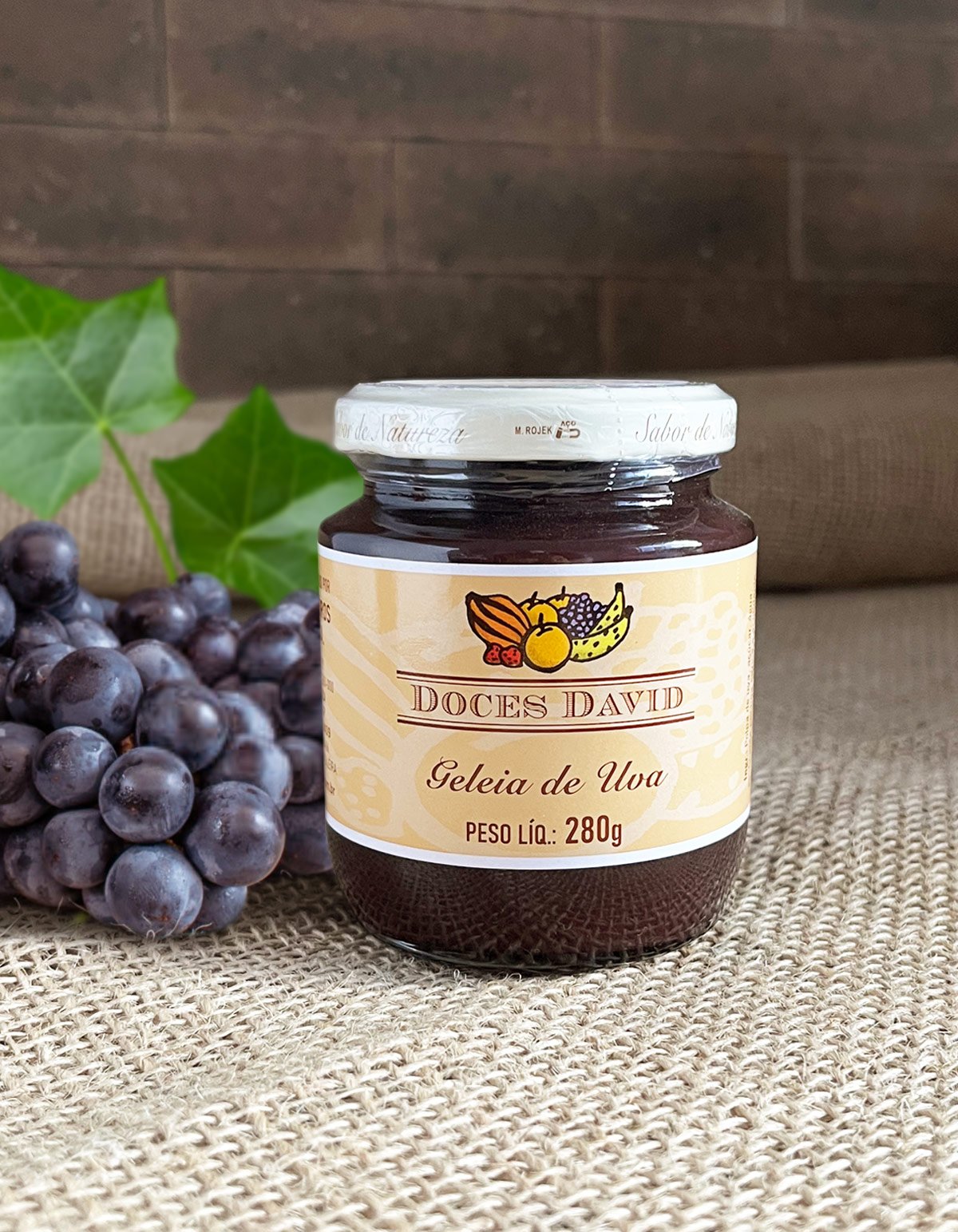 A Geleia de Uva Doces David é elaborada com frutas selecionadas, oferecendo um sabor autêntico e delicioso.