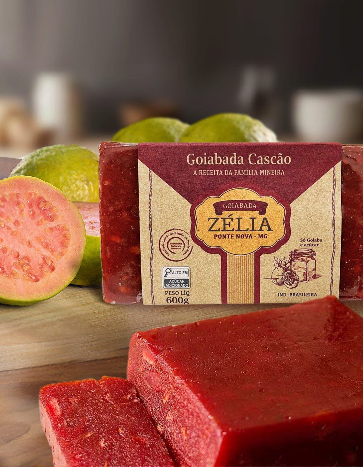 A Goiabada Zélia mantém a receita caseira e tradicional, sendo a mais antiga de Ponte Nova/MG. Feita apenas com goiaba e açúcar, entrega um doce equilibrado e fiel às origens.