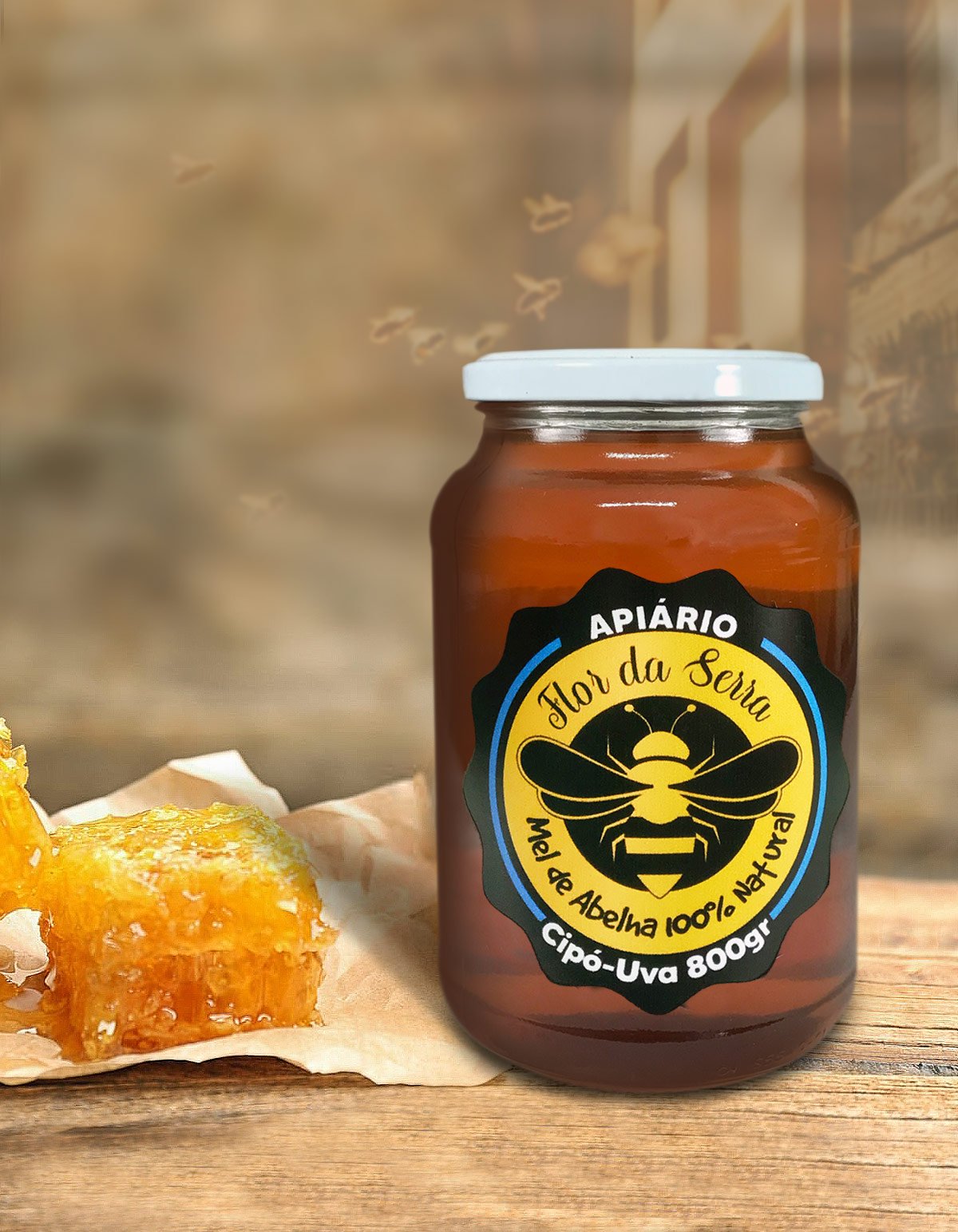 É produzido sem a adição de qualquer substância, sendo apenas colhido dos favos e levado à sua mesa. É 100% natural.