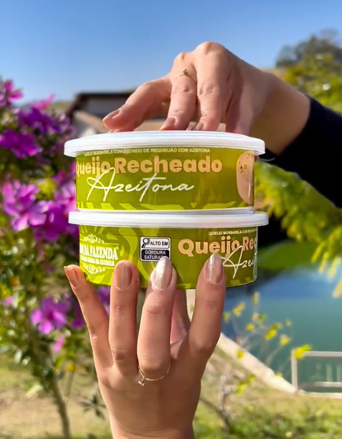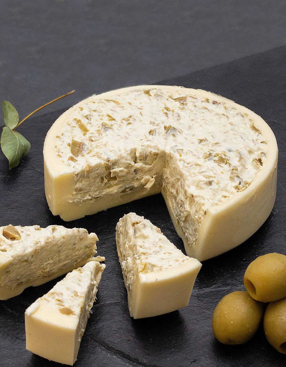 Esse queijo possui uma camada externa consistente de mussarela, e seu interior conta com um delicioso recheio de requeijão cremoso com azeitonas.