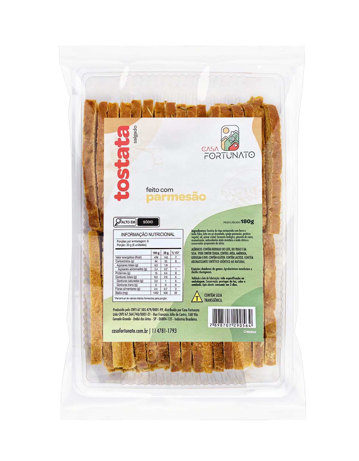 A Tostata de Parmesão Casa Fortunato é uma opção saborosa para quem aprecia pães especiais com personalidade.